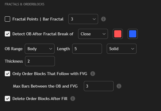 Purpose: Identifies fractal patterns and key institutional zones known as order blocks.